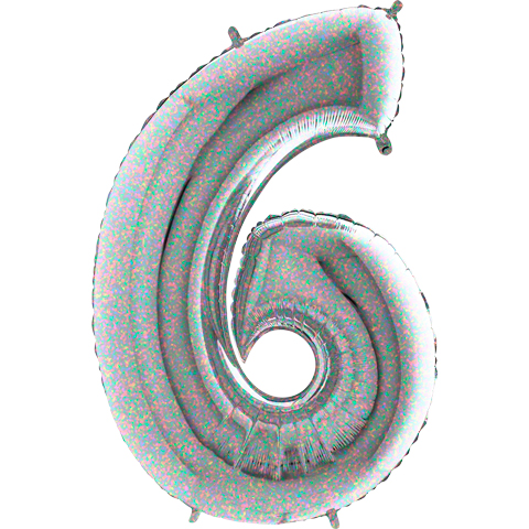Holografický balónek číslo 6. Balónek je vyrobený z pevné fólie. Po nafouknutí vzduchem vydrží naplněný i několik týdnů, pokud si balónek necháte naplnit héliem vydrží pevně nafouklý a bude létat až 4 dny. K nafouknutí balónku používejte vždy speciální pumpičky k tomuto určené, pokud použijete kompresor s velkým tlakem, může balónek prasknout. Nevhodné pro děti do 3 let. Hélium nevdechujte.