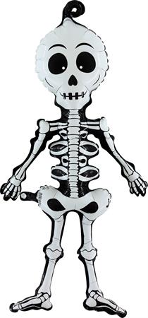 Balónek nafukovací kostlivec. Balónek je vyrobený z pevné fólie. Po nafouknutí vzduchem vydrží naplněný i několik týdnů, pokud si balónek necháte naplnit héliem vydrží pevně nafouklý a bude létat až 4 dny. K nafouknutí balónku používejte vždy speciální pumpičky k tomuto určené, pokud použijete kompresor s velkým tlakem, může balónek prasknout. Nevhodné pro děti do 3 let. Hélium nevdechujte.