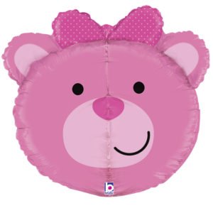 Fóliový balónek ve tvaru růžového medvídka potěší nejednoho oslavence. 69 cm velký.