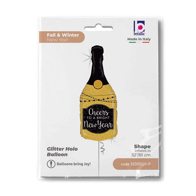 Balónek nafukovací ve tvaru láhve šampaňského. Balónek je vyrobený z