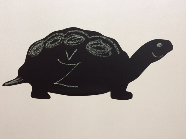 Nálepka na zeď ve tvaru želvičky. Slouží jako tabule na psaní křídou. Zabavte své děti touto milou želvičkou. Nalepíte ji na zeď bez potřeby jakékoliv montáže. Rozměry 26x60 cm. Nálepka drží na všech druzích povrchu. Vždy ji nalepte na suchý a čistý podkla