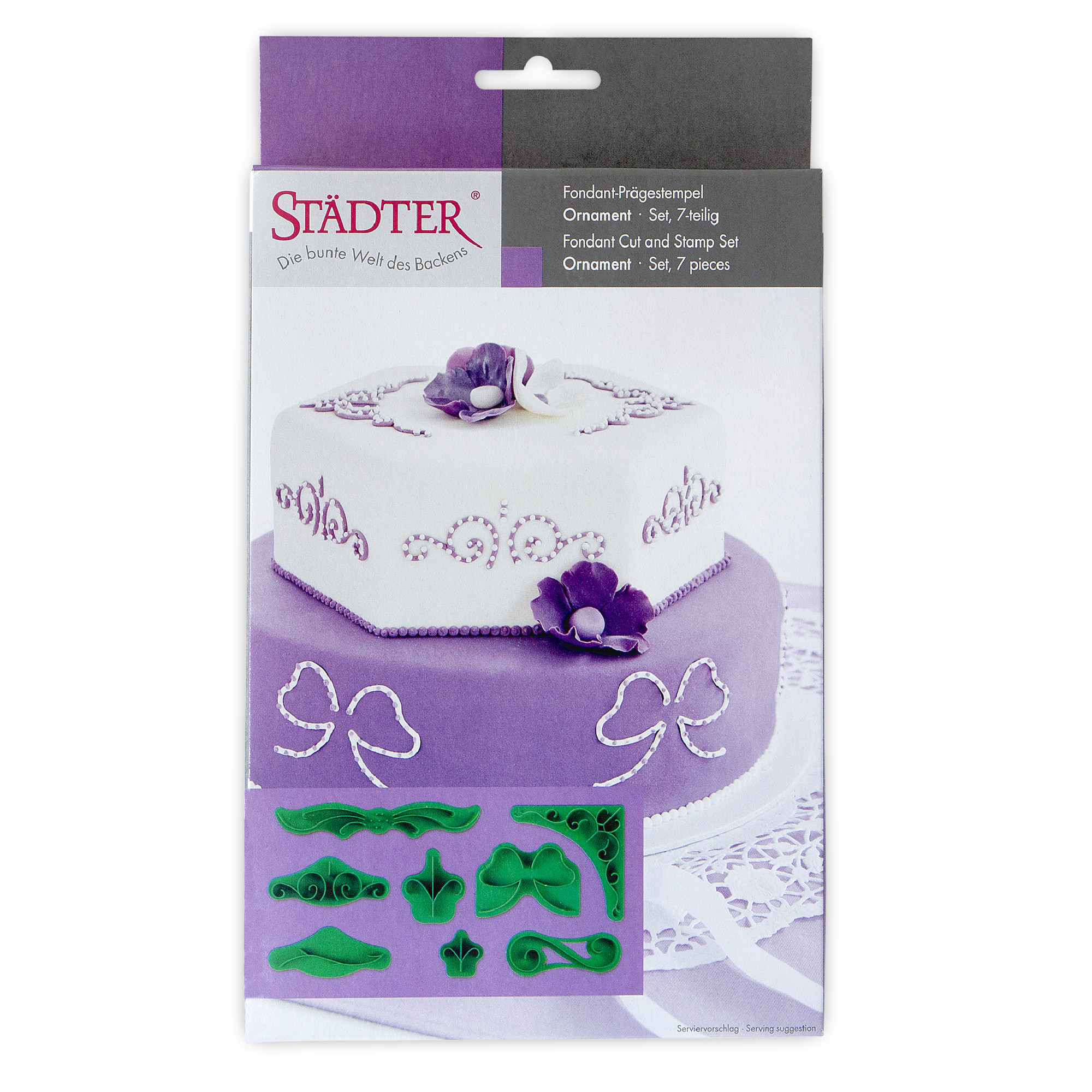 Lehkým tlakem vytlačte vzor do gumpasty nebo marcipánu ornamenty. Reliéfní vzor lze přepracovat pomocí sáčku. S našimi dekoračními razítky určitě uspějete v každé dekoraci. Doporučujeme je ihned po použití opláchnout pod teplou tekoucí vodou. V balení 7 ks různých ornamentů.