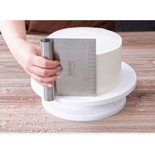 Její univerzální tvar oceníš jak při práci s měkkými těsty, tak při finálních úpravách – dokonale vyhladí povrch máslového krému, pomůže ti vytvořit čisté hrany a udrží tvou kuchyň i pracovní stůl v pořádku. Nerez je hygienický, odolný a velmi snadno se čistí, takže karta zvládne každodenní používání i vyšší zátěž profesionálních cukrářek.