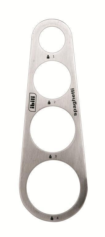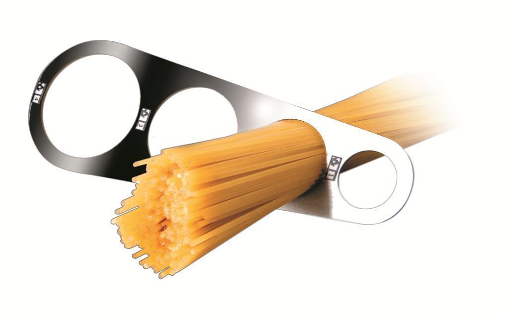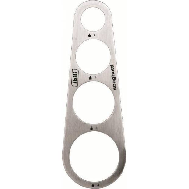 Kvalitní nerezový kuchyňský doplněk jednoduchého tvaru. Ocelová měrka o výšce 16,5cm, s níž můžete připravovat až čtyři rozdílné porce špaget, v závislosti na tom, kolik lidí bude stolovat. Praktický a velice obecný měřící nástroj, s nímž spotřebujete optimální množství ingrediencí.