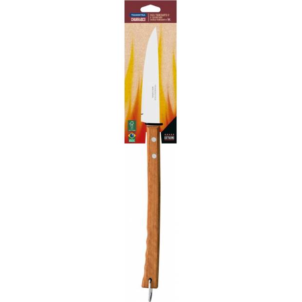 Málokdo dokáže odolat kouzlu grilovaného masa, kdy můžete sedět spolu s rodinou nebo dobrými přáteli, tradičně grilovat chutné kousky masa a pak si jídlo vychutnat v příjemné atmosféře. Pro snadnější porcování masa a špízů nabízí TRAMONTINA dlouhý grilovací nůž EXTREME. Ostrá čepel ze speciální nerezové oceli AISI 420 (odpovídá DIN 1.4028) hladce klouže šťavnatým masem. Aby nůž pohodlně seděl v ruce, je chráněn rukojetí X-TRA LANGEN vyrobenou z tvrdého dřeva, které je odolné před vysokými teplotami ohně grilu. Tento nůž se okamžitě stane vašim neodolatelným společníkem. Je vhodný i pro mytí v myčce. Délka 50 cm.