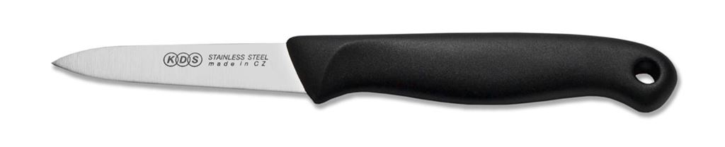 Velmi univerzální kuchyňský nůž, který si hravě poradí s masem i zeleninou. Čepel je dlouhá 7,5 cm, vyrobená z velmi odolné nerezové oceli. Plastová rukojeť usnadní manipulaci s nožem. Je možné jej mýt v myčce nádobí.