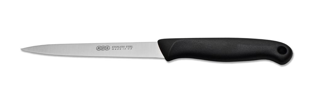 Kvalitní špikovací kuchyňský nůž, který si hravě poradí s masem i zeleninou. Čepel je vyrobená z velmi odolné nerezové oceli. Plastová rukojeť usnadní manipulaci s nožem. Je možné jej mýt v myčce nádobí.