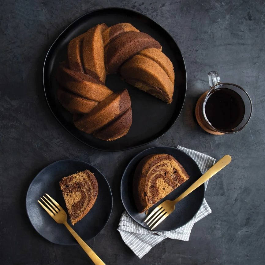 Řada Bundt® dosáhla celosvětové slávy, když se používala k pečení klasických bábovek ve tvaru koblihy, našla si cestu do srdcí a kuchyní lidí po celém světě a stala se typickým americkým dezertem, tradicí pro nespočet rodinných setkání a oslav. Byla uvedena na trh v roce 2021 k 75. výročí vzniku firmy. Má elegantní zlatý postřik. Forma na pečení s názvem Anniversary má propletený design, který ji dodává na výjimečnosti. Tato nepřilnavá forma vytváří krásný dezert, kterým zaujmete své okolí. Hotový výtvor můžete ozdobit cukrem či polevou. Kapacita 12 šálků. Těsto kyne a peče se rovnoměrně díky hliníkové vynikající tepelné vodivosti a zesílenému zapouzdřenému ocelovému okraji zabraňuje deformaci. Nepřilnavý vnitřek pro snadné uvolnění a čištění, pouze ruční mytí. Rozměry 27,3 × 10,4 × 26,9 cm.