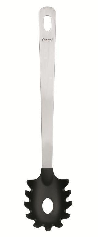 Propracovaná lžíce na těstoviny, která se stane nejenom praktickým, ale vzhledově velice originálním doplňkem vaší kuchyně. Nerezová rukojeť je opatřena otvorem pro jednoduché zavěšení. Lžíce je vykonstruována z tepelně odolného nylonu. Univerzální tvar lžíce je přímo stvoření pro nabírání libovolných těstovin.