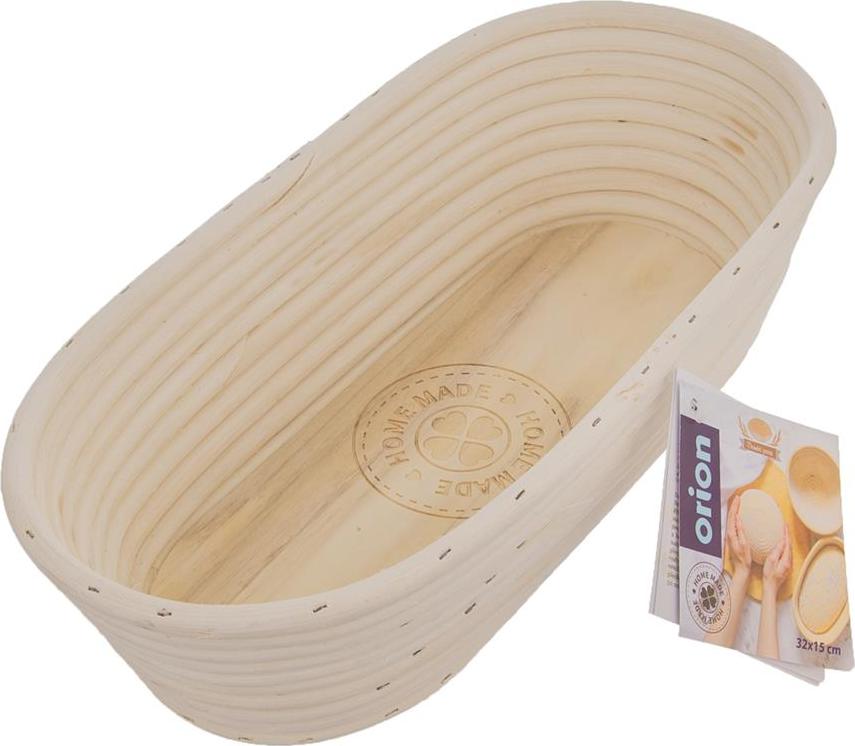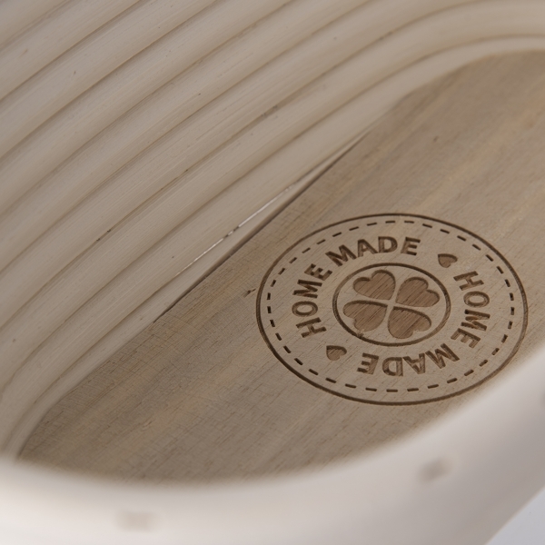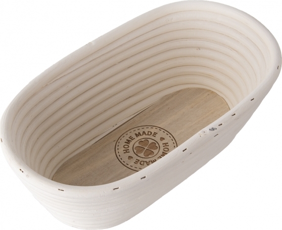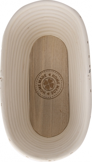 Ošatka na přípravu domácího chleba s motivem HOME MADE oválná Vám pomůže připravit dokonalé čerstvé domácí pečivo. Využijete ji na kynutí těsta, uskladnění chleba, servírování pečiva i jako dekoraci. Tvar a struktura ošatky se otiskne do těsta a vytvoří tak klasický vzhled bochníku. Materiál: přírodní pedig, kanárníkové dřevo. Ošatky se nemáčí, pouze se nechají oschnout, případně je můžete vykartáčovat. Rozměry: 32x15x9 cm, (bochník 1,5 kg, potřeba 750 g mouky).