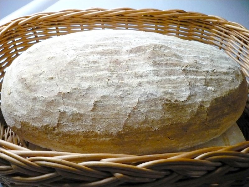 Nepřekynutý bochník můžeme shora opatrně naříznout a na plechu ihned vkládáme do trouby předehřáté na cca 250°C. Po 15 minutách teplotu snížíme na 190°C - 200°C a chléb dopečeme.