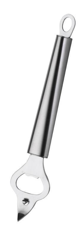 Otvírák je v každé kuchyni i domácnosti takříkajíc samozřejmostí, pokud najednou není k dispozici, vždy k tomu dojde v tu nejméně vhodnou chvíli, na to si můžete vsadit. Protože otevřít láhev, konzervu či něco bez příhodného nástroje na první pohled snadno dostupného, nicméně bez správného vybavení proklatě nedobytného, to není žádná legrace. Hlavně pokud vás tlačí čas a nehodláte se zdržovat zoufalými experimenty s náčiním více či méně nevhodným, tento otvírák si poradí za vás. Bezpečný, praktický a vždy při ruce, očko k zavěšení samozřejmě nepostrádá.