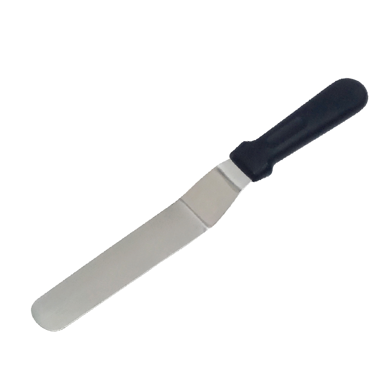 Tento paletový nůž se zahnutou čepelí je nezbytným nástrojem pro zdobení dortů. Díky flexibilnímu ostří z nerezové oceli se zaobleným koncem a ergonomickou plastovou rukojetí lze tuto paletku použít na ledovou polevu na dort, na koláče, ale i krémy a pomazánky. Délka 21 cm.