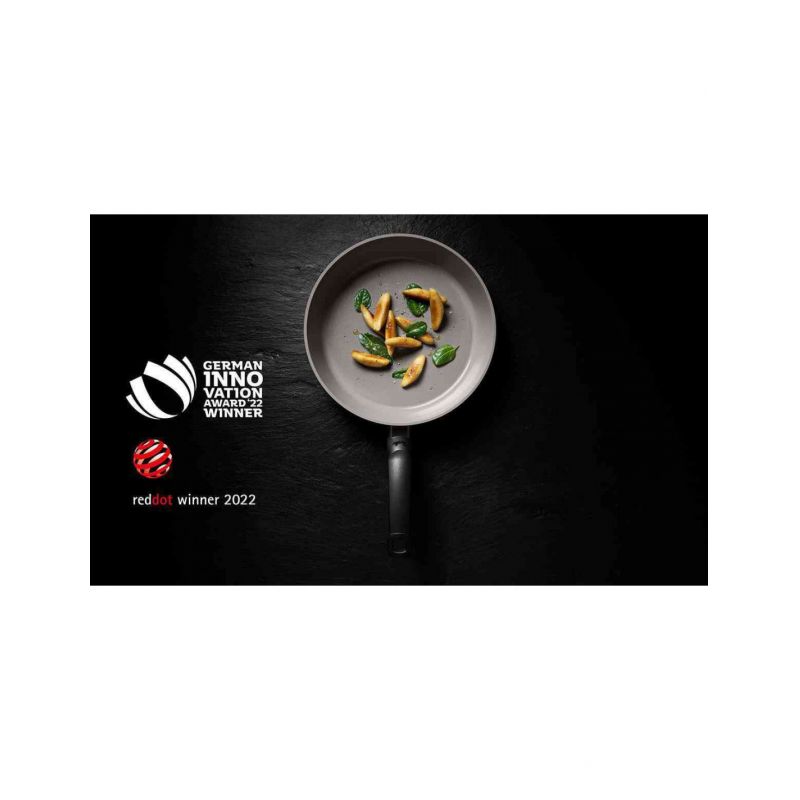 Exkluzivní pánev Ceratal® je vyrobena z keramiky. Perfektně se hodí pro jemné a křupavé pečení masa, zeleniny a vaječných pokrmů. Pánev je opatřena keramickým povlakem na vodní bázi a vyznačuje se velmi dobrým nepřilnavým efektem - bez PFAS/PTFE. Je vhodná pro jemné i křupavé opékání. Pánev má tyto vlastnosti: vhodná pro jemné a křupavé pečení keramický nepřilnavý povrch na vodní bázi bez PFAS/PTFE udržitelně vyrobená z až 60 % recyklovaného hliníku snadné čištění, doporučeno ruční mytí tělo pánve Fissler Comfort s vysokým okrajem a extra velkou fritovací plochou pro snadné míchání a otáčení bez nepořádku Ergonomická bezpečnostní rukojeť Fissler s ochranou prstů: bez nýtů, obzvláště stabilní a hygienická vhodná je na všechny typy sporáků včetně indukce exkluzivní, energeticky účinná základna CookStar® pro optimální rozložení tepla
