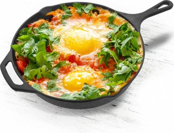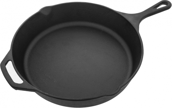 Pánev z litiny průměru 30 cm Vám pomůže při přípravě chutných pokrmů z masa, zeleniny i brambor. Po postupném zahřátí snese i vysoké teploty, maso se i na menším množství tuku rychle zatáhne a šťáva tak zůstane pěkně uvnitř. Má dvě výlevky, takže výpek, redukovanou šťávu i omáčku lze snadno slít.