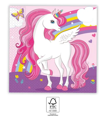 Papírové ubrousky unicorn. Rozměr 33 x 33 cm, v balení 10 ks.