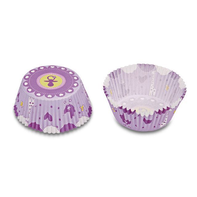 "Papírové pečicí formičky - košíčky lila s dětskými motivy. Papírové formičky jsou vhodné na pečení muffinů a cupcakes. Košíčky vždy naplňte těstem jen do 2/3, při pečení těsto zvětší svůj objem.