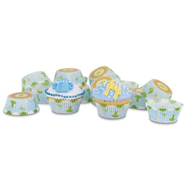 "Papírové pečicí formičky - košíčky modré s dětskými motivy. Papírové formičky jsou vhodné na pečení muffinů a cupcakes. Košíčky vždy naplňte těstem jen do 2/3, při pečení těsto zvětší svůj objem.