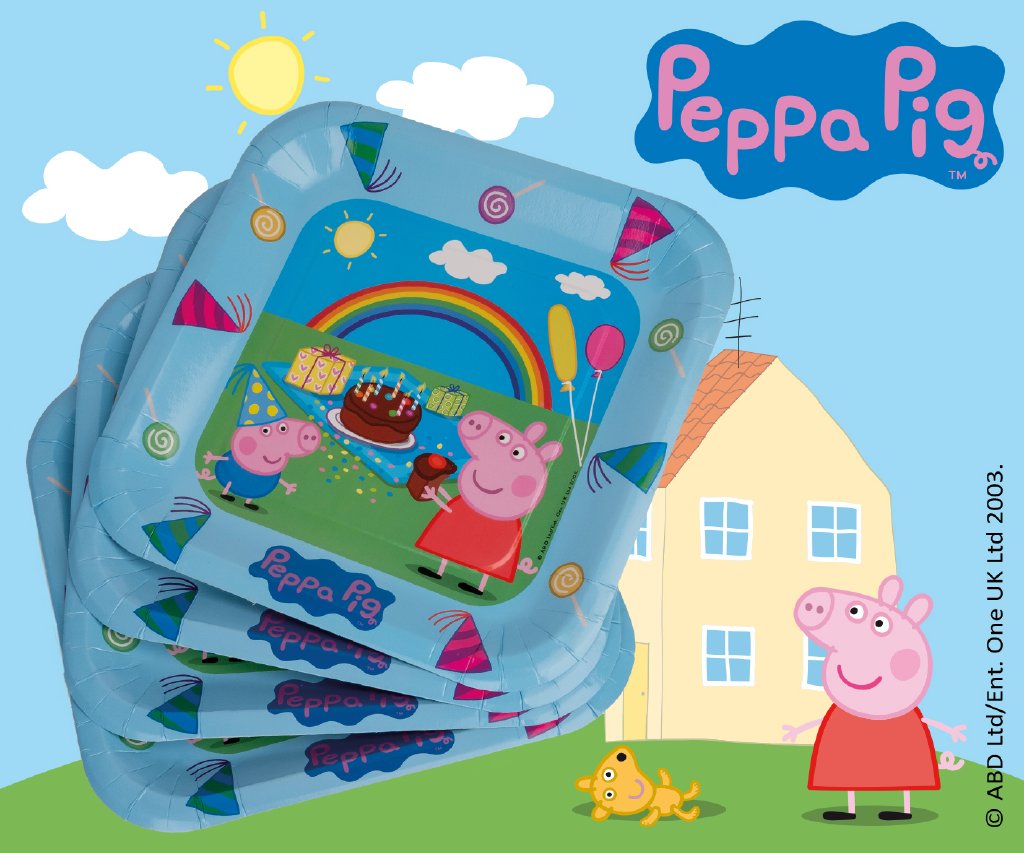 Párty papírové talře s motivem Prasátko Peppa. V balení 6 ks, rozměry 23 x 23 cm.