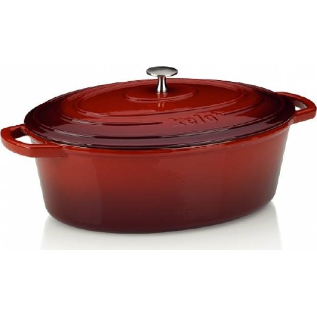 Oválný pekáč Calido má stylový design, perfektně se hodí do kuchyní v tradičním selském stylu, ale i do moderně vybavené domácnosti. S vybavením z této série potěšíte oko, ale i své chuťové buňky díky skvělým výsledkům při pečení a smažení pokrmů. Pekáč je opatřen červenou smaltovanou vrstvou zvenčí a uvnitř je v barvě béžové. Litinová nádoba velmi dobře teplo nejen vede, ale taky jej udržuje, takže vaše hotové jídlo vydrží dlouho teplé. Snese v troubě i skutečně vysoké teploty. Litinové nádobí má skutečně dlouhou životnost, je takřka nesmrtelné. Je vhodné pro všechny typy sporáků, včetně indukce. Součástí je poklice s nerezovou rukojetí. Používejte do max. 300 stupňů Celsia. Kulatý litinový pekáč má rozměry 32 x 25 x 12 cm, objem 6 l. Před prvním použitím pekáč pečlivě omyjte v horké vodě. Nepoužívejte saponáty, ani drsné houbičky a drátěnky. Na silnější znečištění použijte jemnější houbičku. Řádně omyté dno vysušte a potřete olejem. Takto dosáhnete dokonale nepřilnavého povrchu u litinového nádobí. Ideální je ruční mytí.