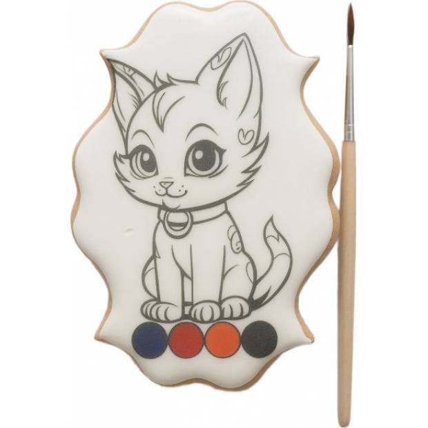 Voňavý perníček ve tvaru kočičky je potažený bílou polevou a připravený k vybarvení jedlými potravinářskými barvami. V balení najdete i štěteček, takže stačí jen kapka vody a děti se mohou pustit do malování své vlastní barevné kočičky.