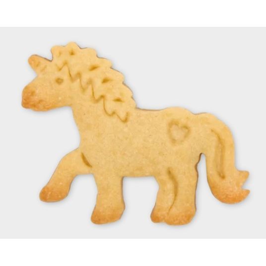 Postup je jednoduchý: vykrajovátko přitisknete na vyválenou hmotu, obvodem vykrojíte tvar a následně pomocí pístu vytlačíte hotový motiv ven. Výsledkem je krásný jednorožec připravený k dozdobení dortu, cupcaku, sušenky či jiného dezertu. Díky plastovému provedení je vhodné pro kontakt s potravinami.