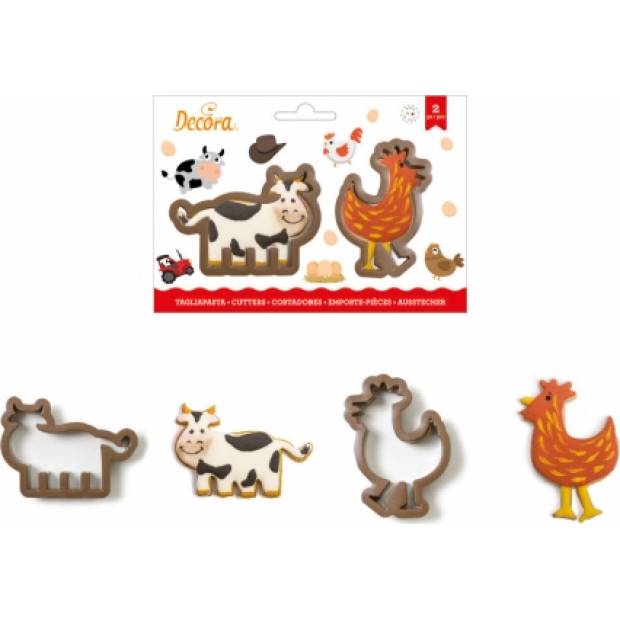 Set zahrnuje dvě plastová vykrajovátka ve tvaru kravičky a slepičky. Jsou vhodná pro přípravu pečených i nepečených druhů cukroví. Plně omyvatelné a zdravotně nezávadné. Rozměry: kravička 9x6.5x2.2cm, slepička 6x9x2.2cm.