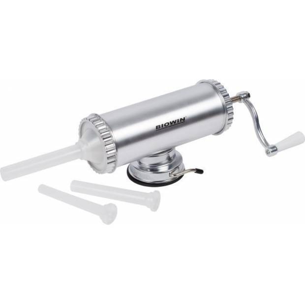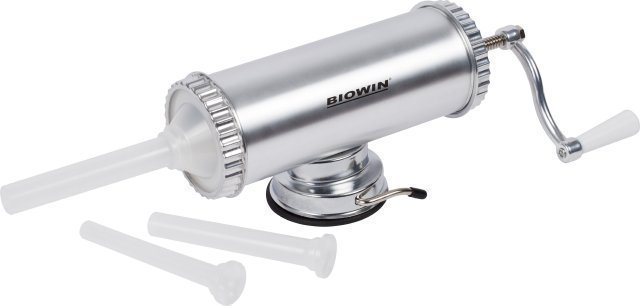 Ruční plnička uzenářských výrobků je vyrobena z kvalitní hliníkové slitiny s atestem pro styk s potravinami. Její používání je díky zvolenému osvědčenému systému velmi snadné a jednoduché, plnění střívek probíhá bez velké námahy.