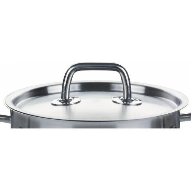 Kovová poklice Fissler je vhodná pro hrnce řady Bergamo a Berlin s vnitřním průměrem 16 cm. Vyrobena je z ušlechtilé nerezové oceli 18/10. Pokličku lze dát do myčky nádobí.