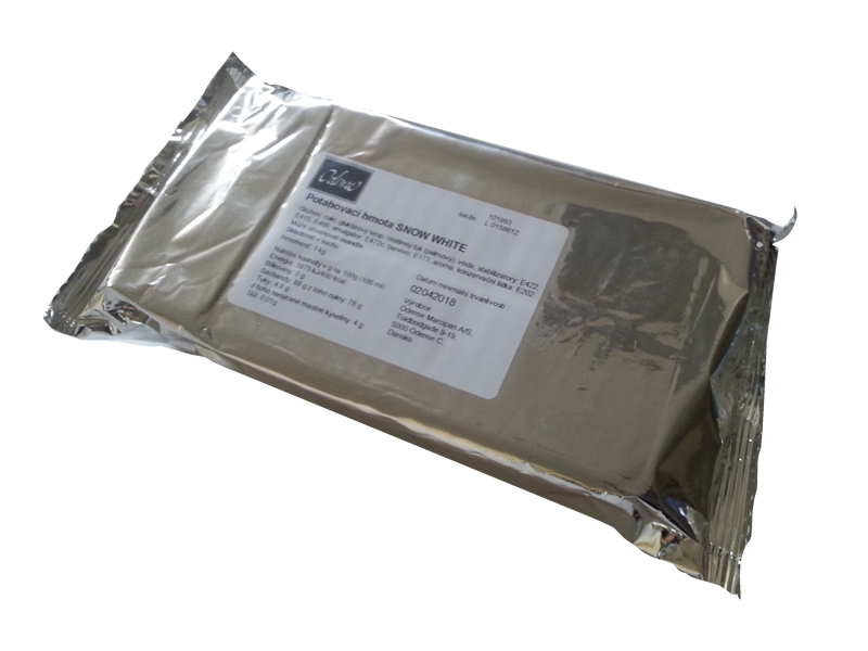 Bílá, extra pružná hmota s vynikajícími vlastnostmi, vhodná zejména k potahování dortů a modelování f
