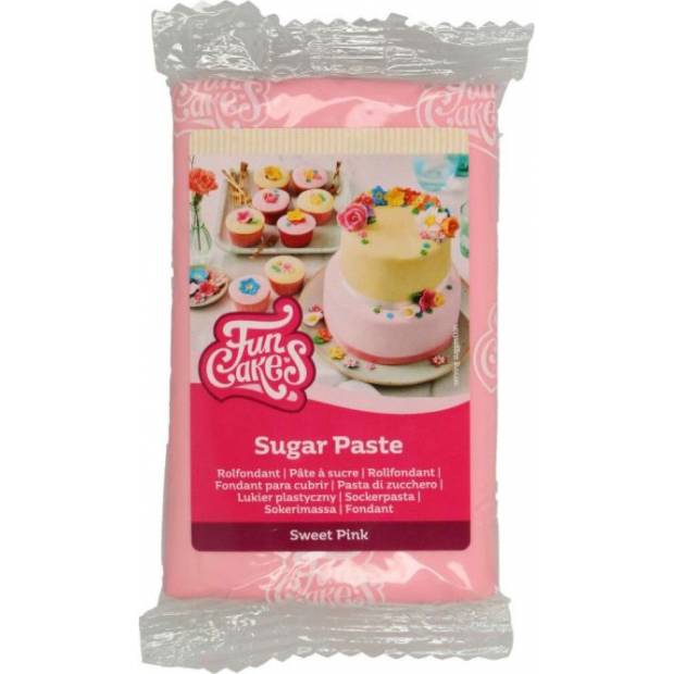 Cukrová pasta Pink má krásnou růžovou barvu a lahodnou vanilkovou příchuť. Ideální na zakrytí dortu a vykrajování tvarů. Před použitím dobře prohněteme a vyválíme na tenkou vrstvu moučkového cukru. Cukrovou pastu můžete také použít k modelování nebo vytvářet různé tvary a vzory. Vhodné také k barvení potravinářským barvivem. Pro dosažení nejlepších výsledků nechte fondán po obarvení jednu hodinu odpočívat (přikrytý). Před dalším zpracováním cukrovou pastu znovu prohněteme. Na pokrytí kulatého dortu o průměru 20 cm budete potřebovat přibližně 500 g fondánu. Cukrová pasta FunCakes s lahodnou vanilkovou příchutí, velmi pružná, hladká a snadno se používá díky své jemné struktuře. Fondán je měkký, poddajný a po zpracování zcela vytvrdne. Cukrová pasta FunCakes je díky svému saténovému provedení perfektní pro potažení dortu. Chcete-li z fondánu vykrajovat tvary, pak máte jistotu, že získáte úhledné, čisté a ostré výřezy. Cukrová pasta je vhodná i pro tvorbu dekorací, snadno modelujete nebo vytváříte různé tvary a vzory. Obsah: 250 gramů. Skladování: skladujte v suchu a temnu, 15°C – 20°C. Příprava: Pro nejlepší výsledek se doporučuje následující postup: Nechte cukrovou pastu ohřát na pokojovou teplotu. Cukrovou pastu důkladně hněteme, dokud nebude hladká a pružná. Pracovní plochu poprašte trochou moučkového cukru a válečkem vyválejte fondán do rovnoměrného tvaru (tloušťka 2-3 mm). Otočte cukrovou pastu o čtvrtinu, aby se nepřilepila. Jsou při vyvalování fondánu na okrajích stále vidět drobné prasklinky? Znovu důkladně hněteme, dokud nejsou okraje při vyvalování hladké. Poté je cukrová pasta připravena k použití.