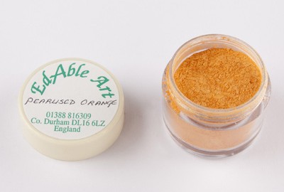 Prachová barva Pearlised orange od Edable Art pro snadné malování jedlých dekorací a motivů.