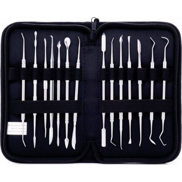 Příslušenství pro různé hmoty. Univerzální pomůcky pro modelování hmot, duroplastů a plastelíny. Doplňky jsou vyrobeny z nerezové oceli. Jsou pohodlné a snadno se používají. Usnadní zpracování materiálů, které je mimořádně efektivní a pohodlné. Oboustranné modelovací kostice zaručují originální efekty a profesionální povrchovou úpravu. V elegantním pouzdře.