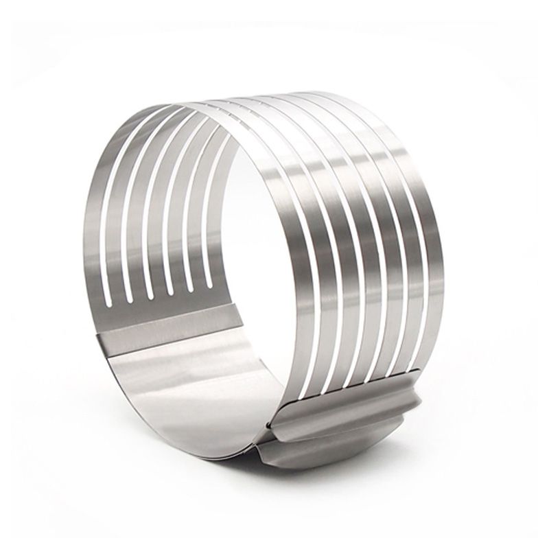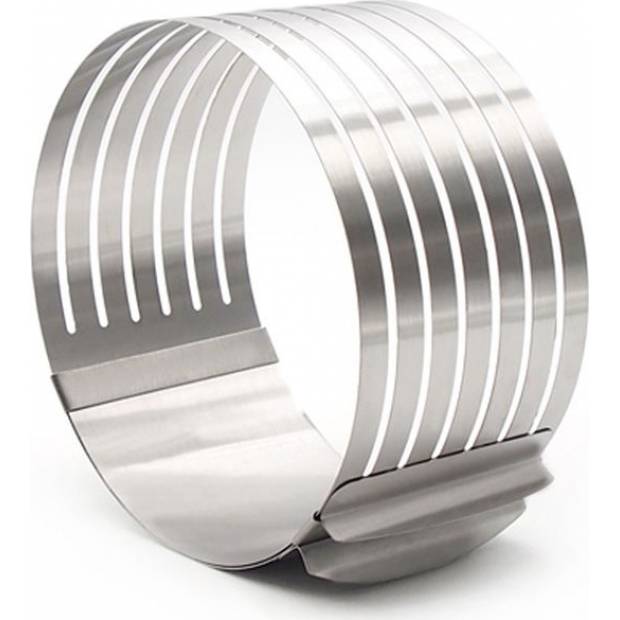 Vysoce kvalitní, nastavitelná kulatá forma s vyhrazeným nožem pro dokonce i řezání dortů. Speciální design usnadňuje snížení dortů na 7 vrstev. Sada je velmi užitečná při přípravě pečiva s doplňky. Prokrajovač z nerezové oceli vám umožní zavěsit nůž. Vyrobeno z nerezové oceli, usnadňuje práci a usnadňuje čištění sady.