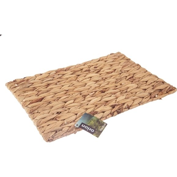 Prostírání z přírodního materiálu. Po obvodu kovový rám – skrytý. Materiál: listy mořské trávy, kov. Rozměry: 45x30 cm.