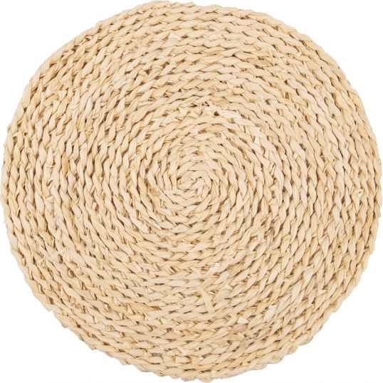 Prostírání z přírodního materiálu. Materiál: kukuřičné šustí. Rozměry: pr. 35 cm, v. 1,5 cm.