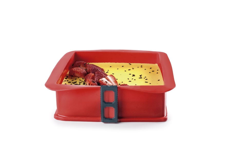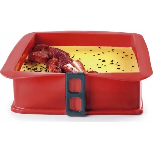 Silikonová forma Ibili má hranatý tvar a skleněnou základnu. Hodí se na dorty i jiné sladké a slané pečivo. Vyrobena je ze silikonového materiálu, díky kterému je odolná a trvanlivá v průběhu času. Díky materiálu, ze kterého je vyrobena, není těžká, naopak je velmi lehká a dobře se s ní manipuluje. Lze ji použít jak pro mražené potraviny, tak pro pečené pokrmy. Nemění složení jídla ani jeho chuť. Je to velmi hygienická a snadno se čistí forma, lze ji mýt v myčce na nádobí. Umožňuje snadné vyjmutí připravených potravin. Má adekvátní rozměr 25 x 25 cm. Díky základně je možné dezerty snadno zdobit.