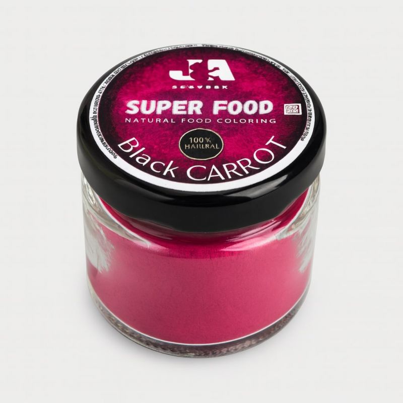 Přírodní barvivo BLACK CARROT z černé mrkve dodá tvým dezertům intenzivní fialový až hluboce purpurový tón – čistě přírodní, bez konzervantů a bez vlivu na chuť.