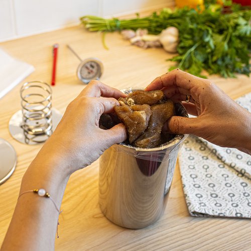 Balení 20 pevných sáčků z průhledné fólie určených pro styk s potravinami. Sáčky 16 cm x 23 cm se perfektně hodí k 0,8 kg nerezovému šunkovaru. Díky nim můžete nejen snadno a rychle vložit a vyjmout náklad z komory na šunku, ale také udržovat zařízení bezvadně čisté. Sáčky se velmi snadno používají. Musíte je pouze rozložit dovnitř komory přístroje, vložit do nich své oblíbené maso nebo vegetariánskou náplň, zabalit konec alobalu a přitlačit jej pomocí pružiny a víka na šunku. Při vyjímání potraviny fólii jednoduše vytáhněte a ta se oddělí od vnitřních stěn a vytáhne náklad zevnitř. Použití sáčků je pohodlný způsob, jak připravit šunky, dušená masa, vegetariánská paštika i dezerty a želé v pěkném a chutném tvaru. Sáčky vyrobené z fólie určené pro styk s potravinami.