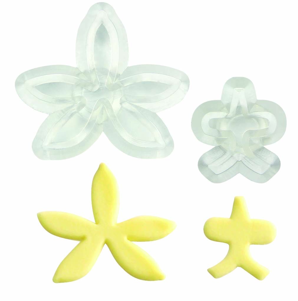 Sada 2ks vykrajovátek pro výrobu jedlé orchideje na dort. Rozměr hotové orchideje: 2cm.