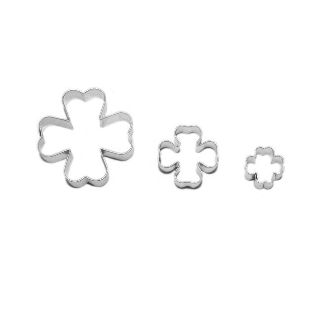 Vykrajovátka z pocínovaného plechu ve tvaru čtyřlístku ve třech velikostech.