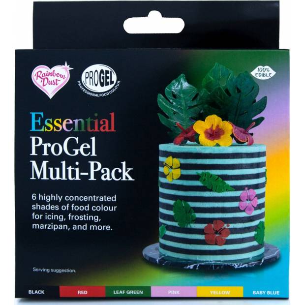 Progel od Rainbow Dust jsou pro zdobení ideální! Stačí malé množství potravinářského barviva, aby vaše výtvory získaly sytou barvu. Trubičky, které déle vydrží, jsou vhodné i k barvení piškotů, bonbonů a dalších. Každý gel je balen v barevně sladěné a čisté plastové tubě. Zkumavky obsahují pod šroubovacím uzávěrem plombu prokazatelnou neoprávněnou manipulaci. Jednoduše odloupněte a vytlačte gel z tuby. Už žádné špinavé nádoby, díky nimž bude vaše skříňka na nářadí plná barevných skvrn. Jak používat: gel přidejte do fondánu nebo marcipánu a hněťte, dokud se barva nespojí. Dobře prohněteme do požadované barvy. Nyní je barevný fondán nebo marcipán připraven k použití na vašem dortu! Doporučené dávkování je 3 gramy na kilogram hotového výrobku.