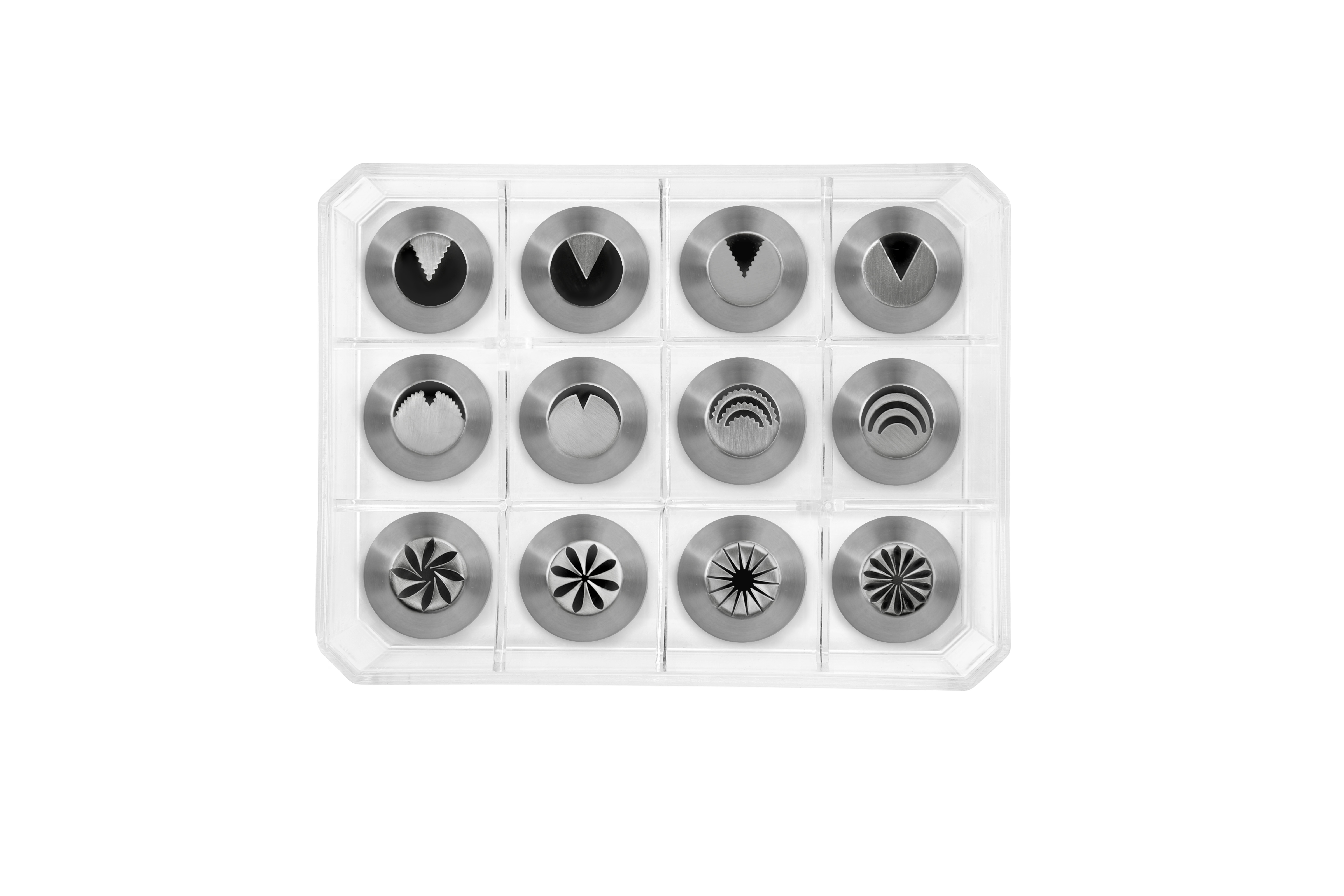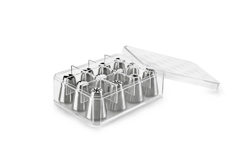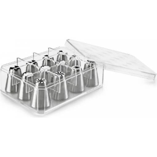 Sada dvanácti nerezových koncovek vám umožní vytvořit celou řadu dekorací z krému. Ideální set na vytváření květin a okvětních lístků. Špičky jsou z kvalitního nerezu (18/10) a lze je mýt v myčce.