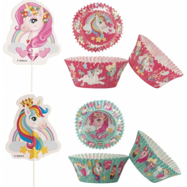 Sada košíčků a zápichů jednorožec - 24ks košíčků + 24 ks zápichů - Dekora