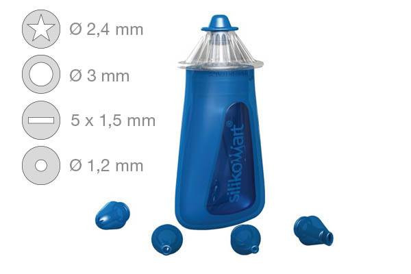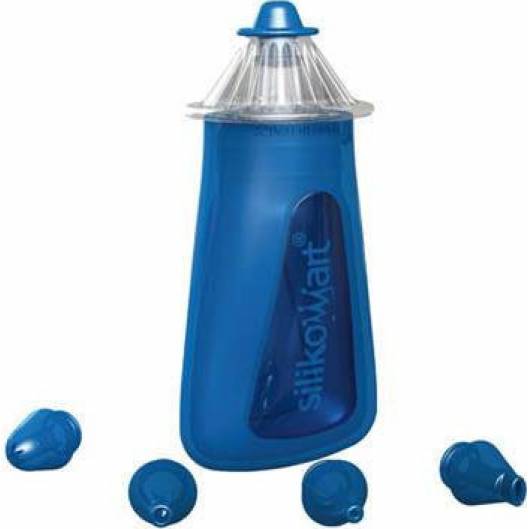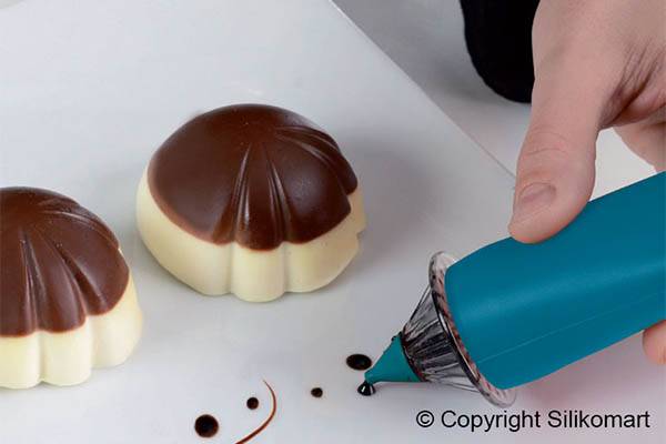 Zdobící tužku naplníte krémem či polevou, připevníte koncovku a můžete kreslit. V sadě je koncovka ve tvaru hvězdy (průměr 2,4 mm), velkého kruhu (3 mm), obdélníku (5 x 1,5 mm) a malého kruhu (1,2 mm). Tělo tužky je vyrobeno ze silikonu.