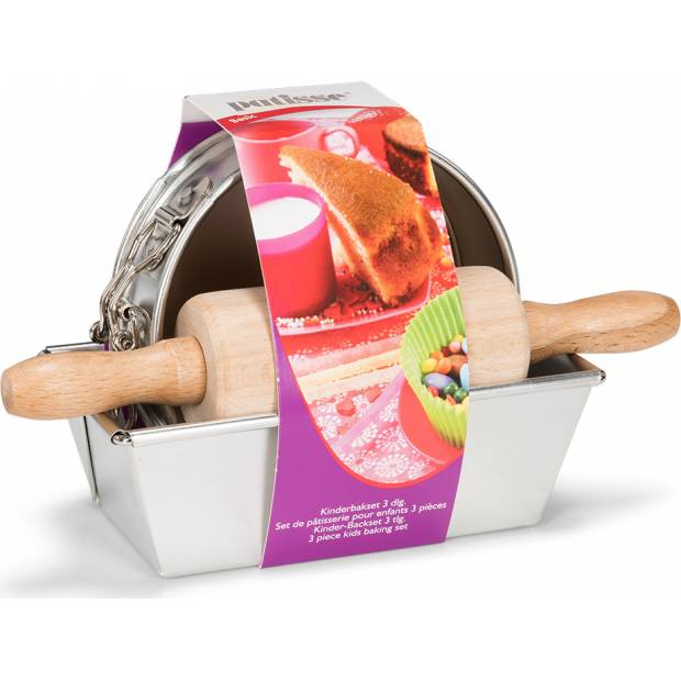 Dětská pečicí sada Patisse z pocínované oceli válcované za studena o tloušťce 0,3 mm. Sada se skládá z jarní formy 12 cm, dortové formy 15 cm a dřevěné dortové rolky 10 cm. Patisse je holandská společnost, která vyrábí kvalitní pekařské výrobky již od roku 1988. Sortiment zahrnuje velký a vzrušující sortiment ve vysoké kvalitě. Formy na dort a chleba mají dobrý rozvod tepla díky oceli válcované za studena. Všechny produkty jsou vyráběny v naší vlastní továrně v Evropě a vyváženy do více než 50 zemí světa. Nevhodné do myčky nádobí. 2 roky záruka.