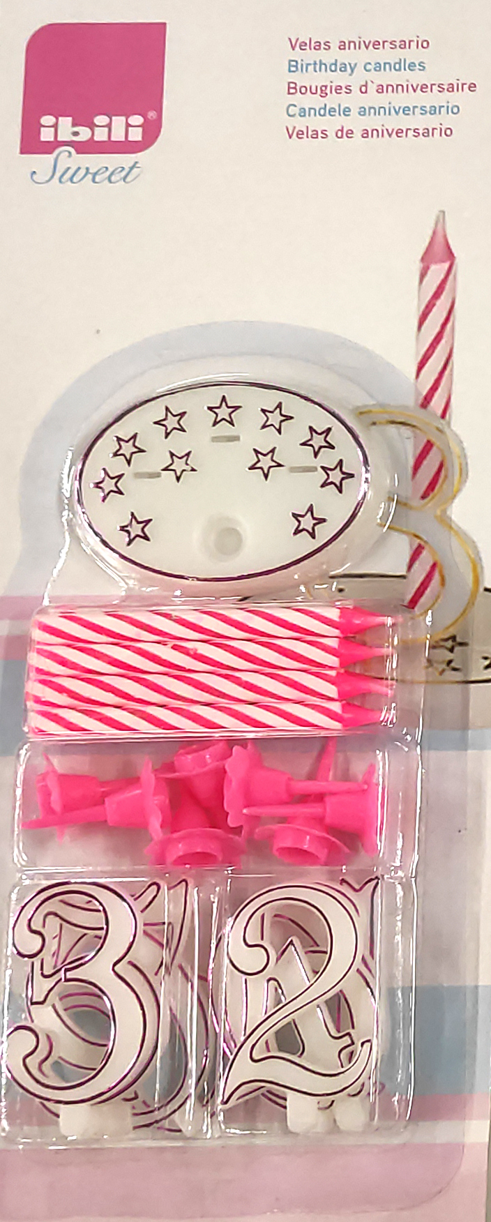 Sada narozeninových svíček 7cm 8ks svíček a číslice - růžová - Ibili