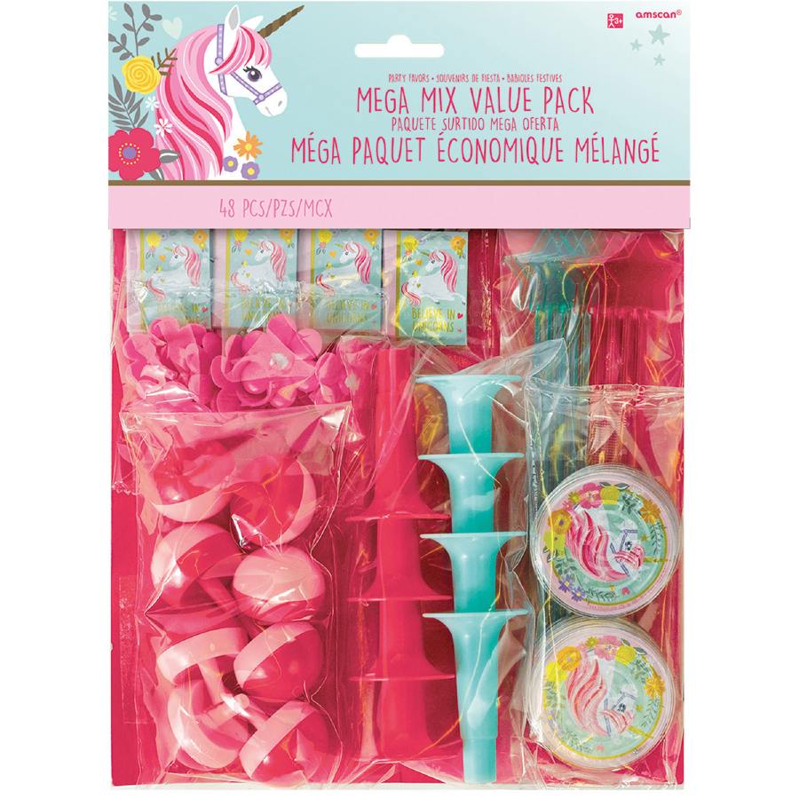 Narozeninový večírek vašeho dítěte bude mít pohádkový konec, když rozdáte radost party balíčkem ve stylu Unicorn. Tato oblíbená sada zahrnuje mini pozvánky, bludiště, hvězdné hůlky, květinové prsteny, a další. Udělejte ze svého jednorožcového večírku svého dítěte skvělou vzpomínku tím, že jej připravíte s pomocí tohoto dekorativního setu. V balení 48 dílů. Sada obsahuje: 8 mini vizitek 8 hádanek bludiště 8 hvězdných hůlek 8 květních prstenů 8 vrcholů 8 tácků