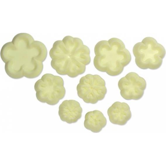 Vykrajovátka ve tvaru sedmikrásek a primulek. S vykrajovátky se velmi dobře pracuje. Velikosti jednotlivých květů jsou od 8 do 25 mm. Vhodné pro modelovací pasty, marcipán, fondán a další cukrářské hmoty. Vykrajovátka lze mýt v myčce nádobí. V balení 10 ks.