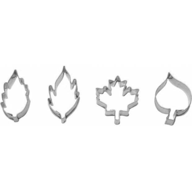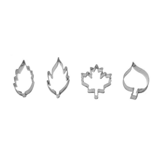 Vykrajovátka na čtyři lístečky různého tvaru v velikosti od 2,1 do 4,9 centimetru jsou vyrobena z kvalitního pocínovaného plechu, který je samozřejmě zdravotně zcela nezávadný a vzhledem k svému hladkému povrchu se po použití snadno umývá. Upečené lístečky můžete nejen slepovat, ale podle své fantazie i zdobit s pomocí různých zdobících sad z naší nabídky. Složení sady: 4 lístečky různého tvaru Rozměr: 4,3 x 2,5 cm 4 x 3 cm 3,8 x 3,6 cm 4 x 2,1 cmMateriál: pocínovaný plech